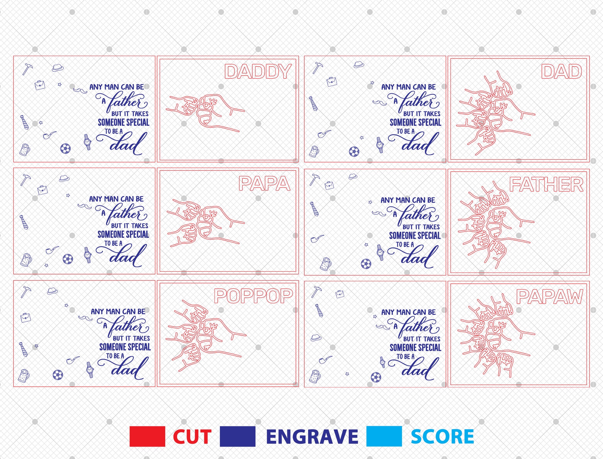 Any Man Can Be a Father Laser Cut File | Papaw Dad Hand Fist Sign | Family Quote Wooden Decor | Glowforge, xTool, LightBurn, etc.