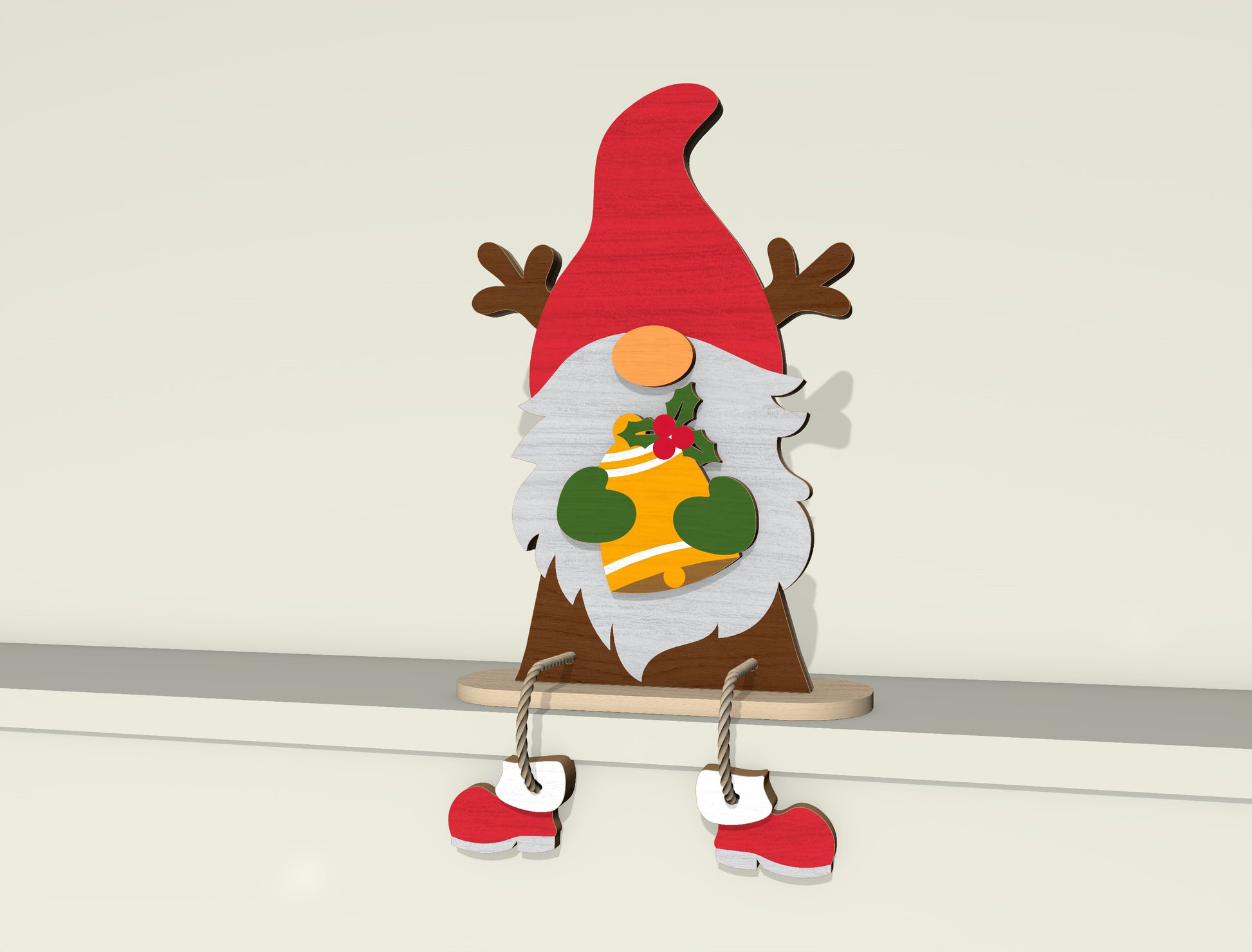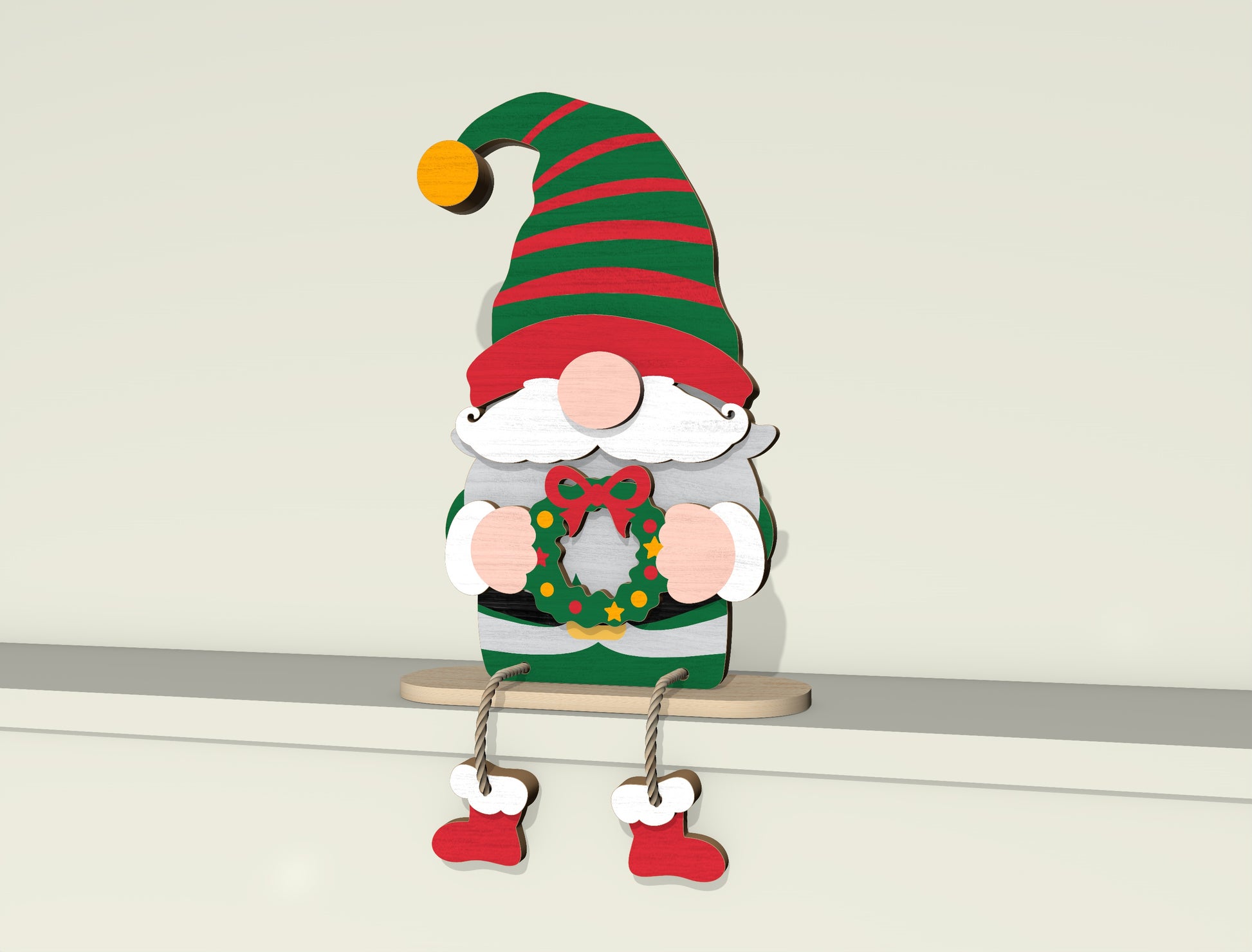 Create fun and festive Christmas shelf decor with this gnome shelf sitter laser cut file set. Featuring multiple gnome designs with dangling legs, perfect for shelves, mantels, tiered trays, and DIY holiday displays.