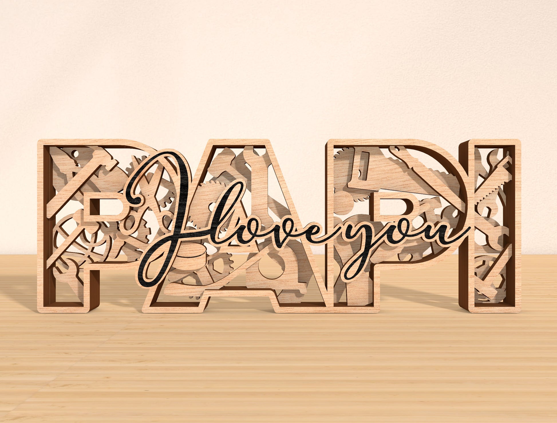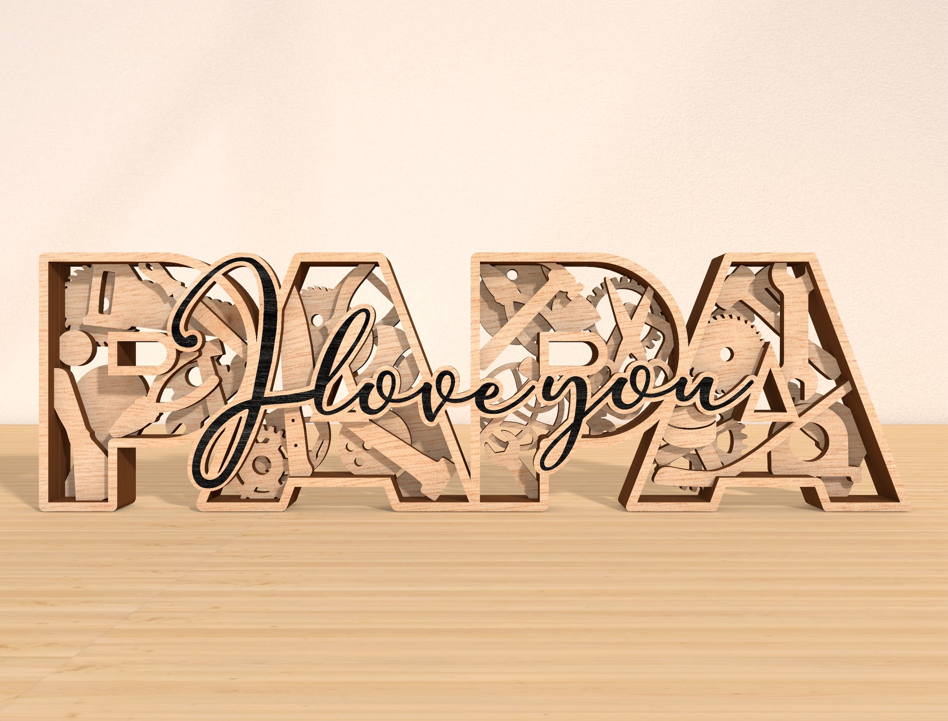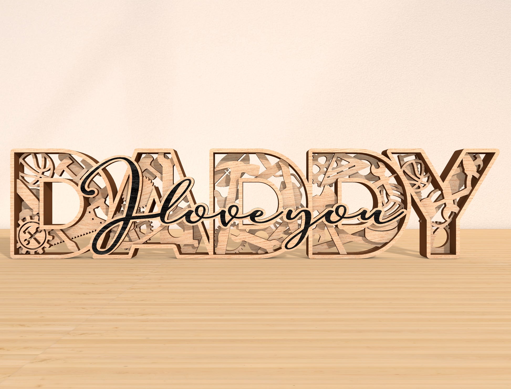 Dad Papa Pops Daddy Tabletop Sign Laser Cut File | Father’s Day Desk Decor | Layered Wooden Word Art | Glowforge, xTool, LightBurn