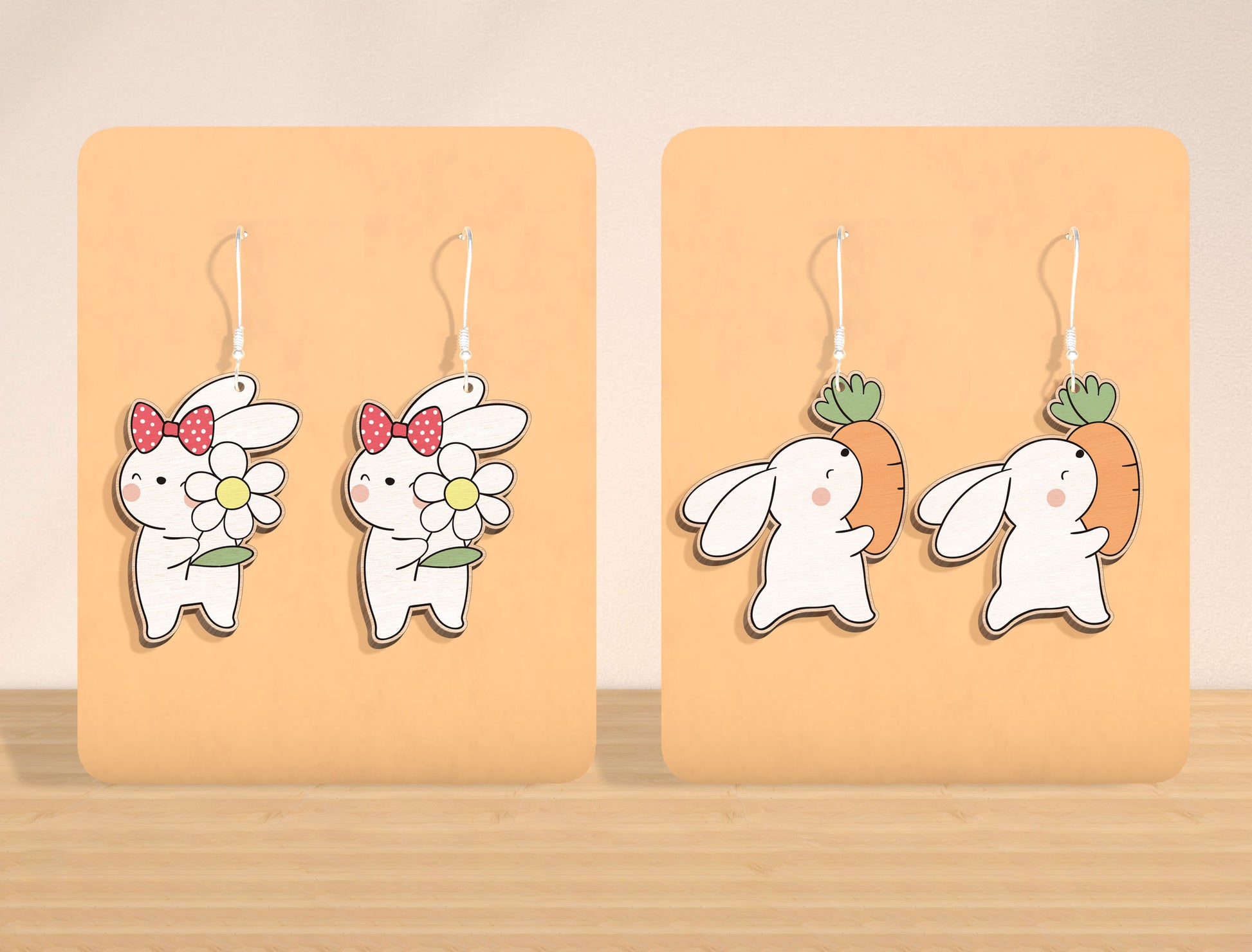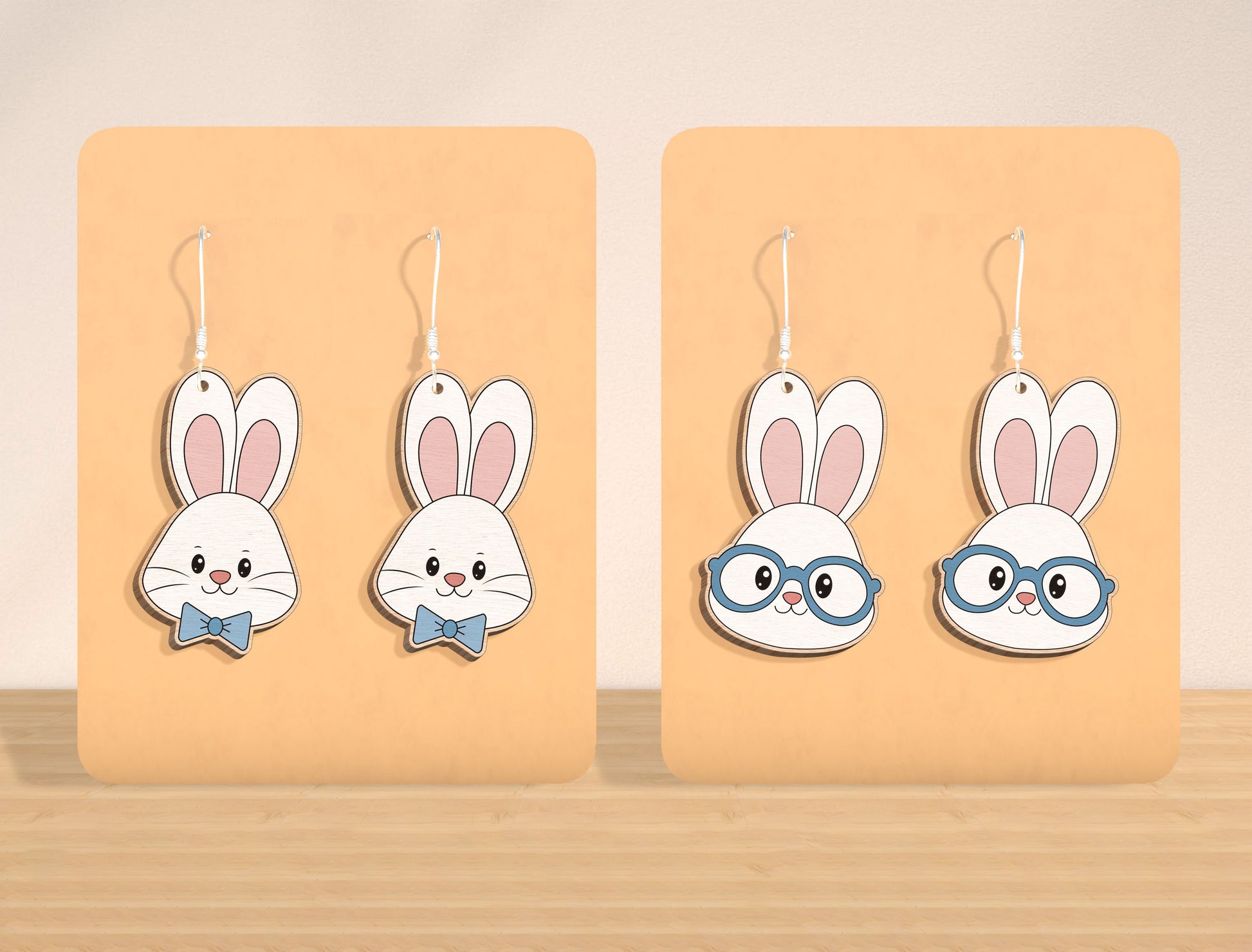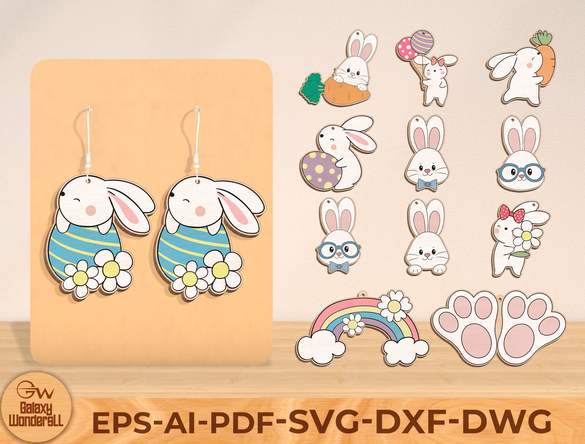 Easter Bunny Earrings SVG Bundle Laser Cut File | 12 Cute Rabbit Designs | Spring Wooden Earrings | Glowforge, xTool, LightBurn, etc.