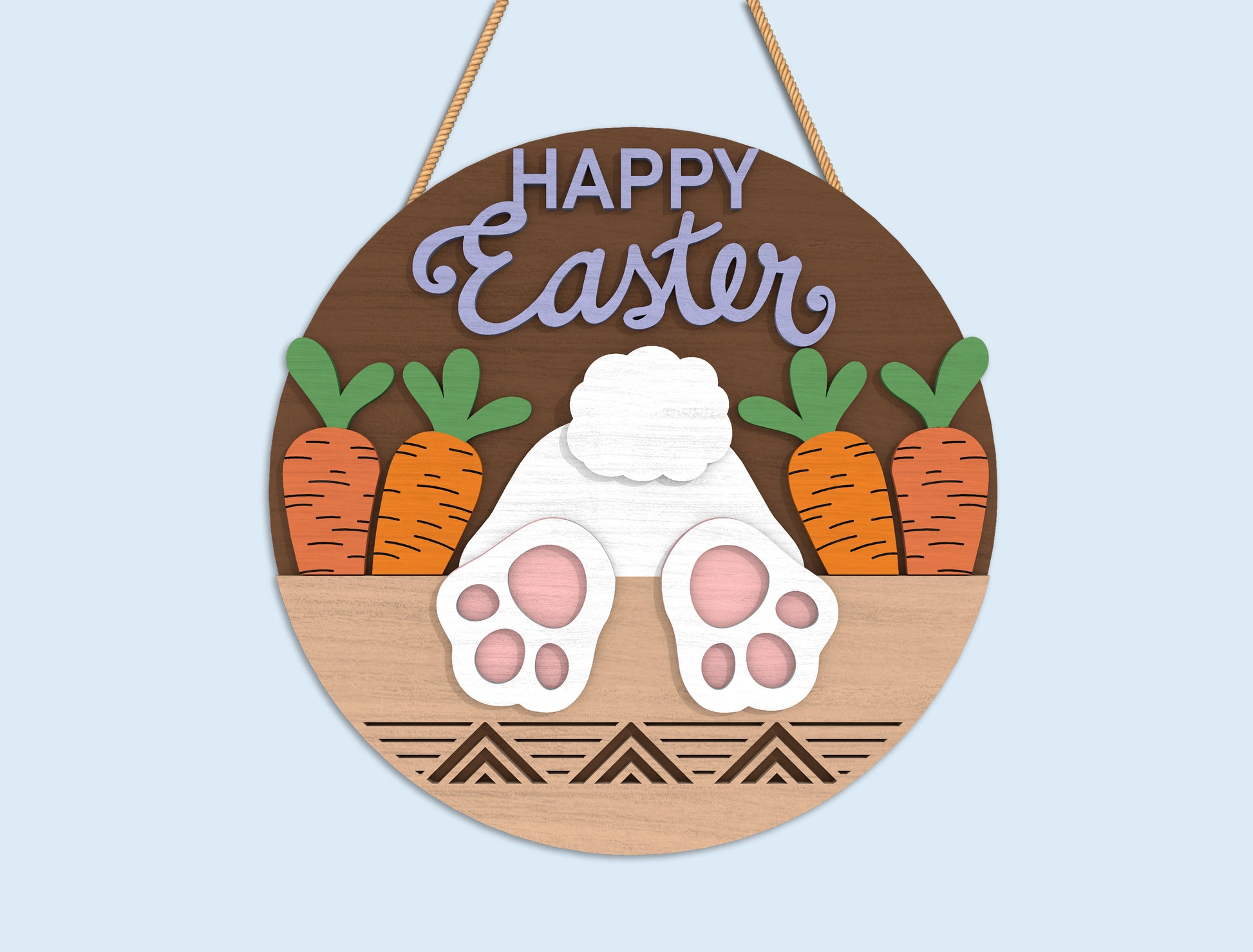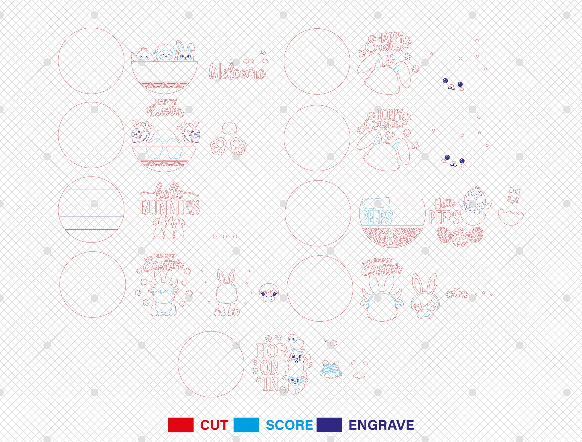 Easter Round Door Sign SVG Bundle Laser Cut File | 9 Cute Easter Designs | Spring Wooden Decor | Glowforge, xTool, LightBurn, etc.