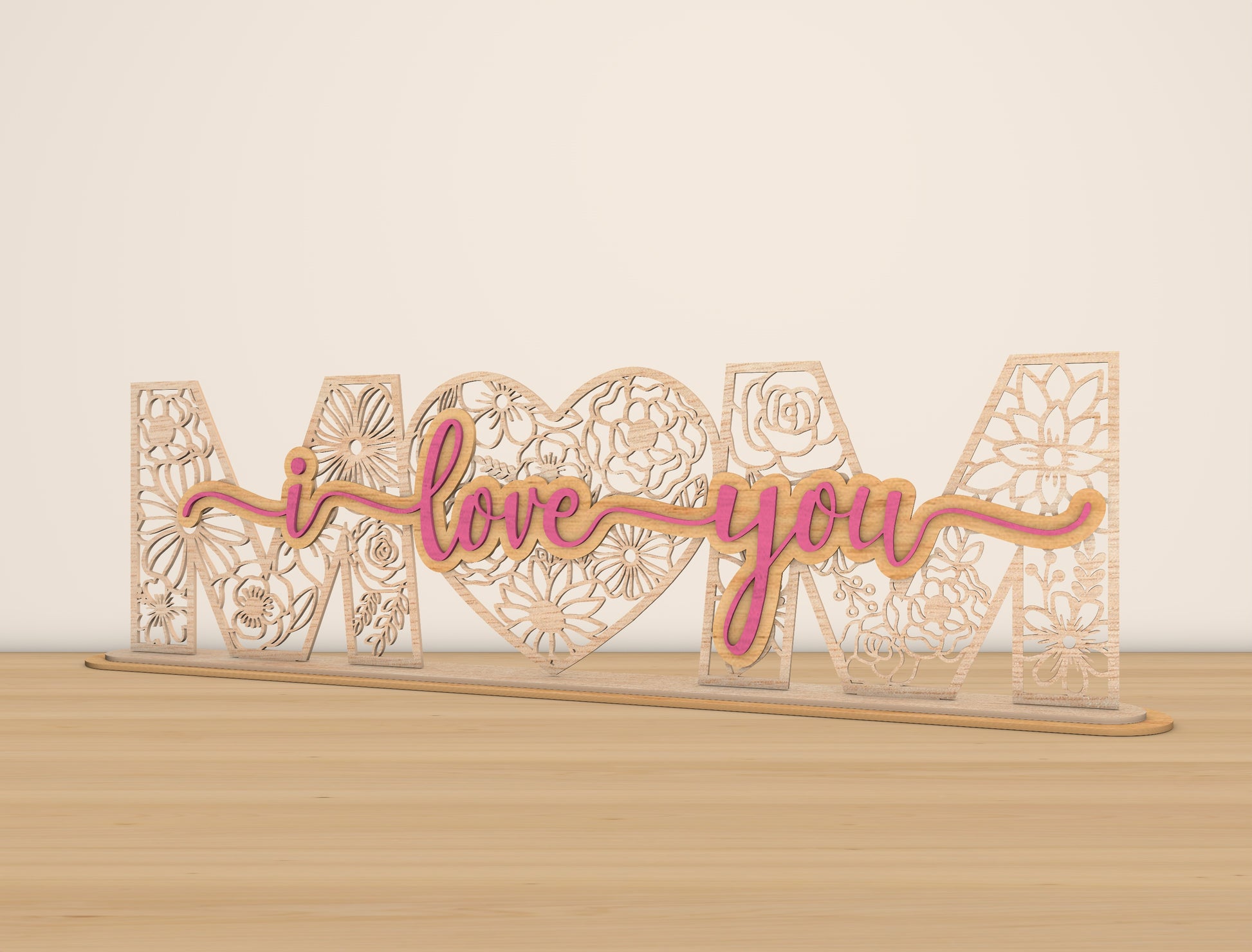 Mom I Love You Laser Cut File | Mother’s Day Wooden Sign | Floral Pattern Decor | Glowforge, xTool, LightBurn Compatible, etc.