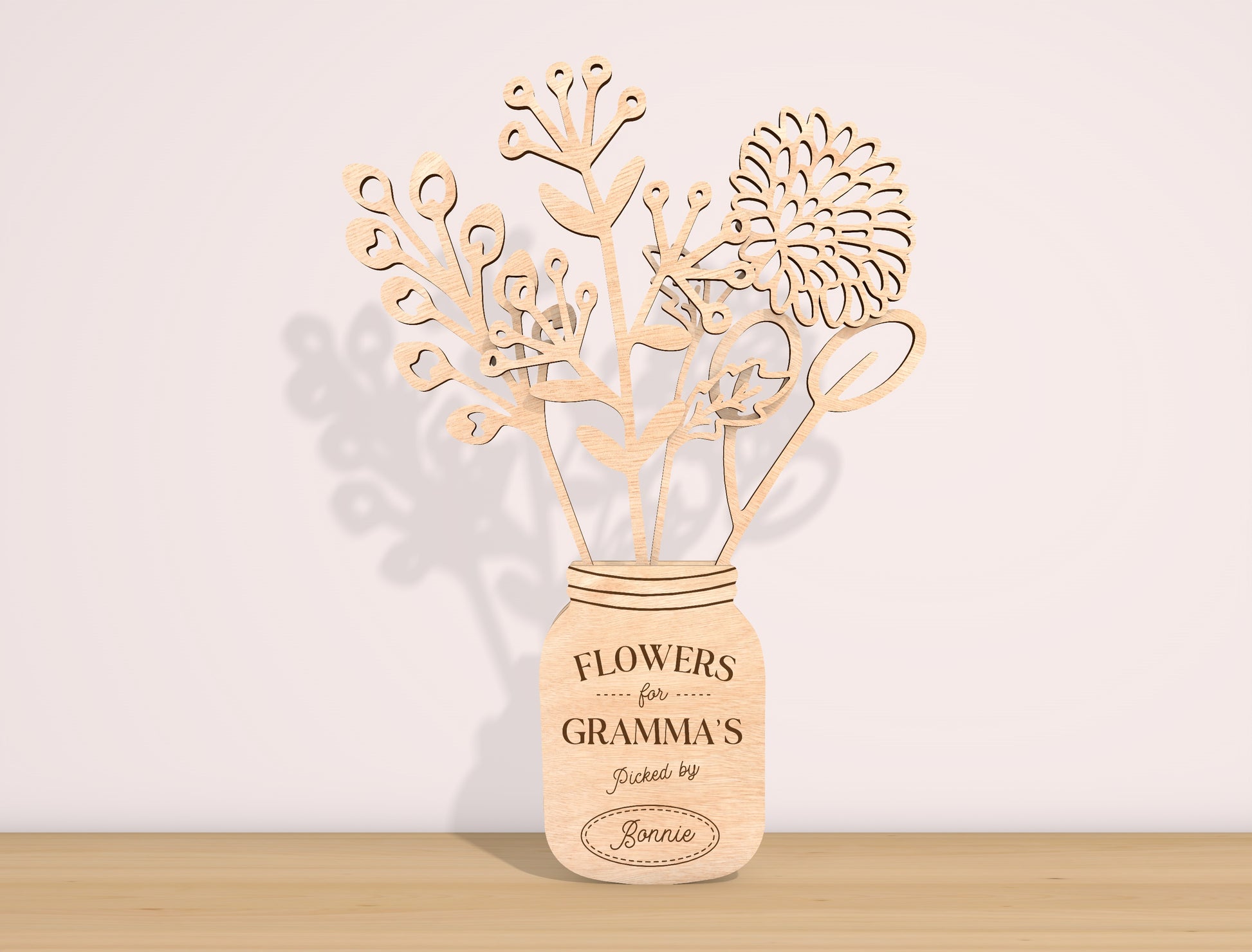 This bundle includes 12 individual birth month flower designs, created to be used inside layered wooden flower jar arrangements for Mother’s Day. Each flower represents a specific month of the year, allowing you to build meaningful floral displays where each bloom symbolizes a child, family member, or loved one. The designs are perfect for creating personalized “Flowers for Mom / Grandma / Nana” style projects with emotional value and strong gift appeal.