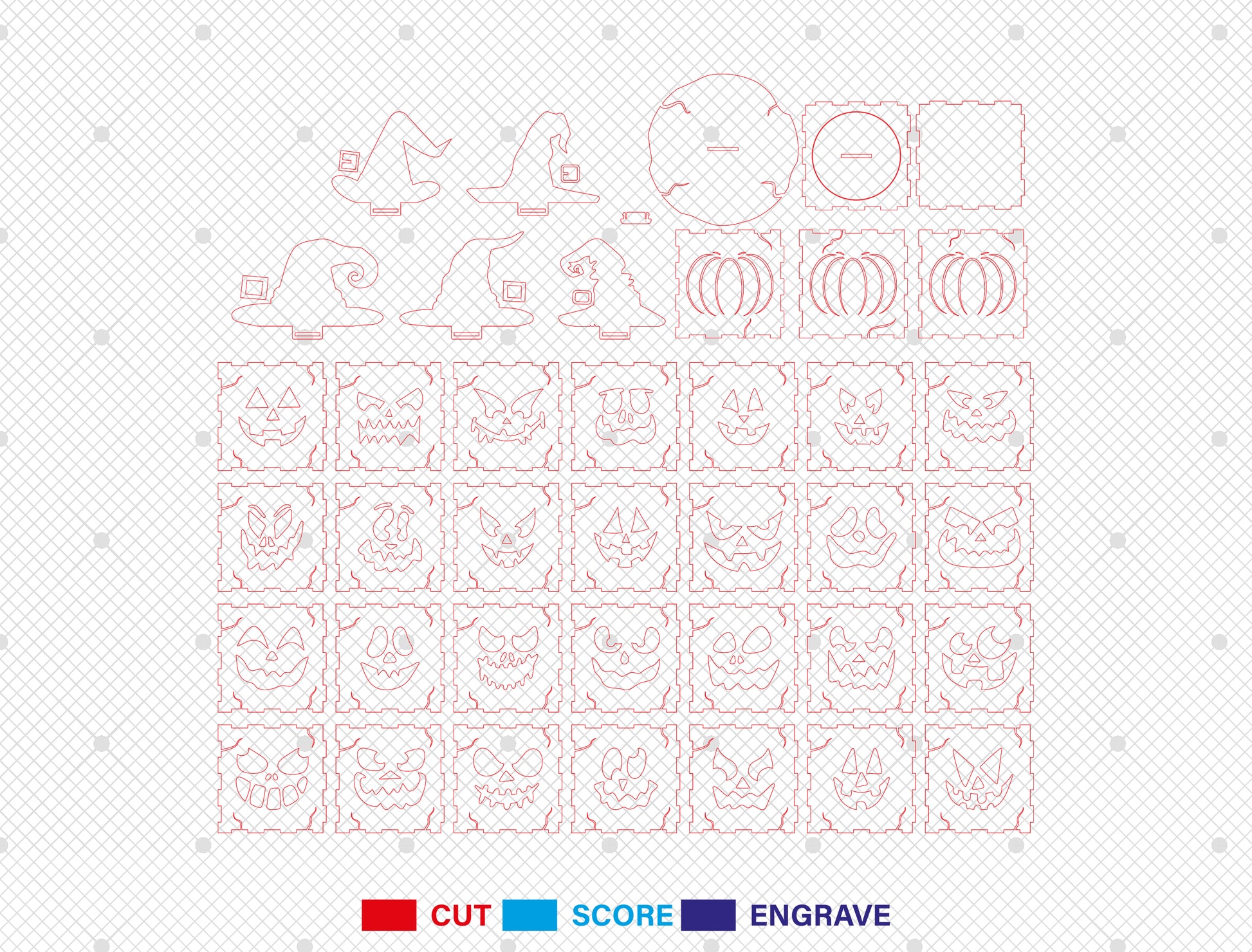 This bundle includes 35 individual pumpkin face designs created specifically for Halloween lantern projects. Each design features a unique jack-o’-lantern expression, ranging from playful and cute to spooky and mischievous, allowing you to mix and match faces for endless lantern variations.