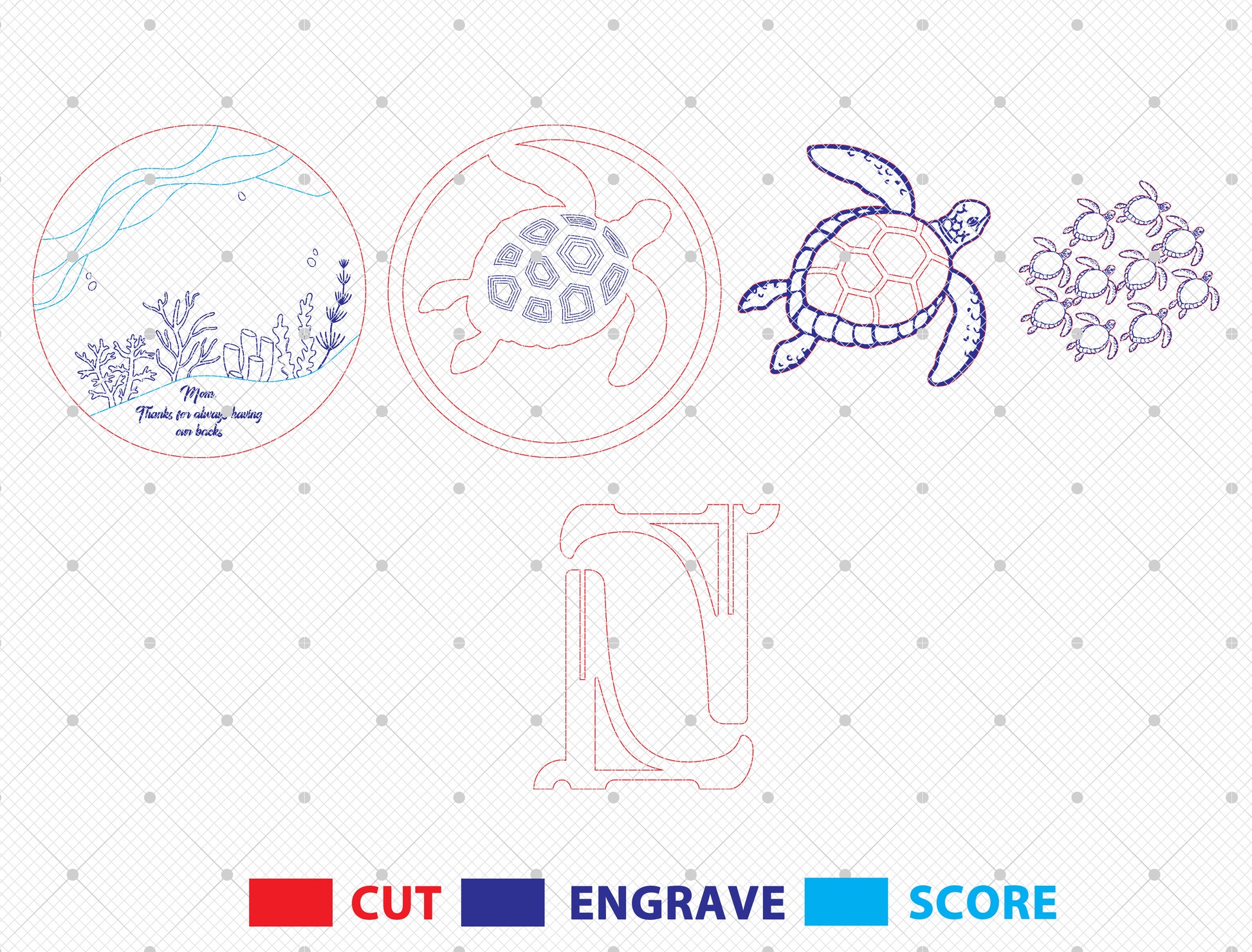 Sea Turtle Family Sign Laser Cut File | Mother’s Day Decor | Ocean Wooden Style | Glowforge, xTool, LightBurn, etc.