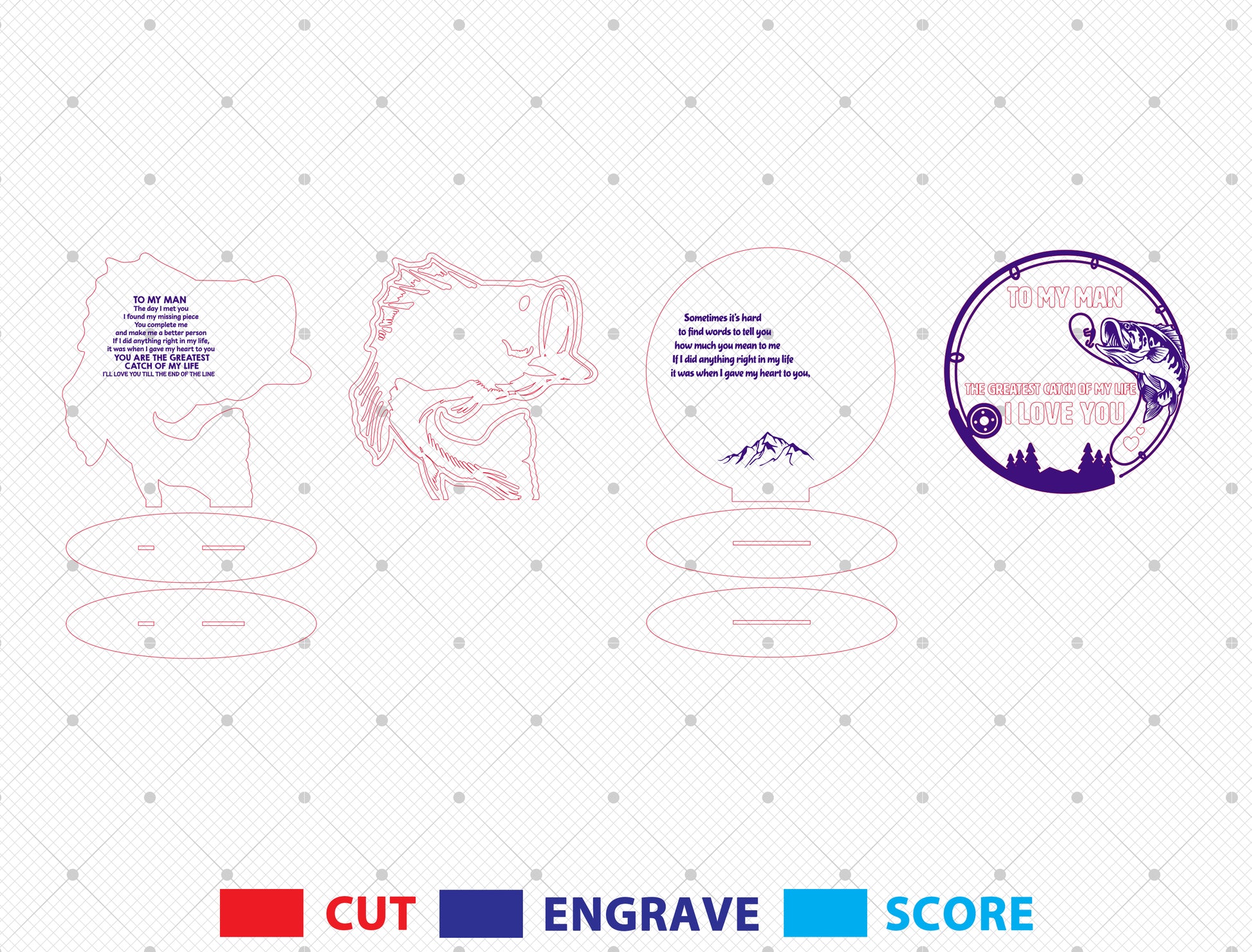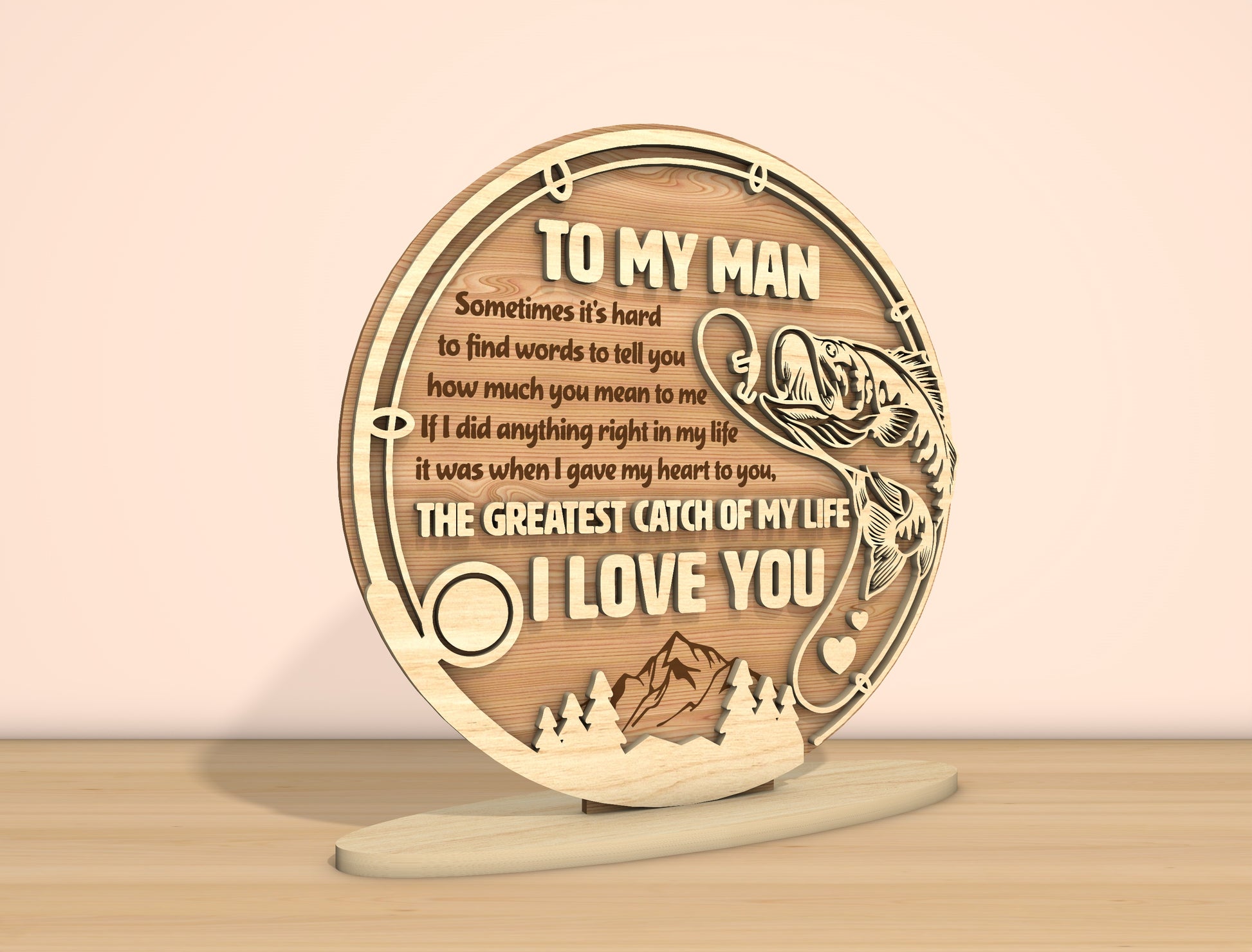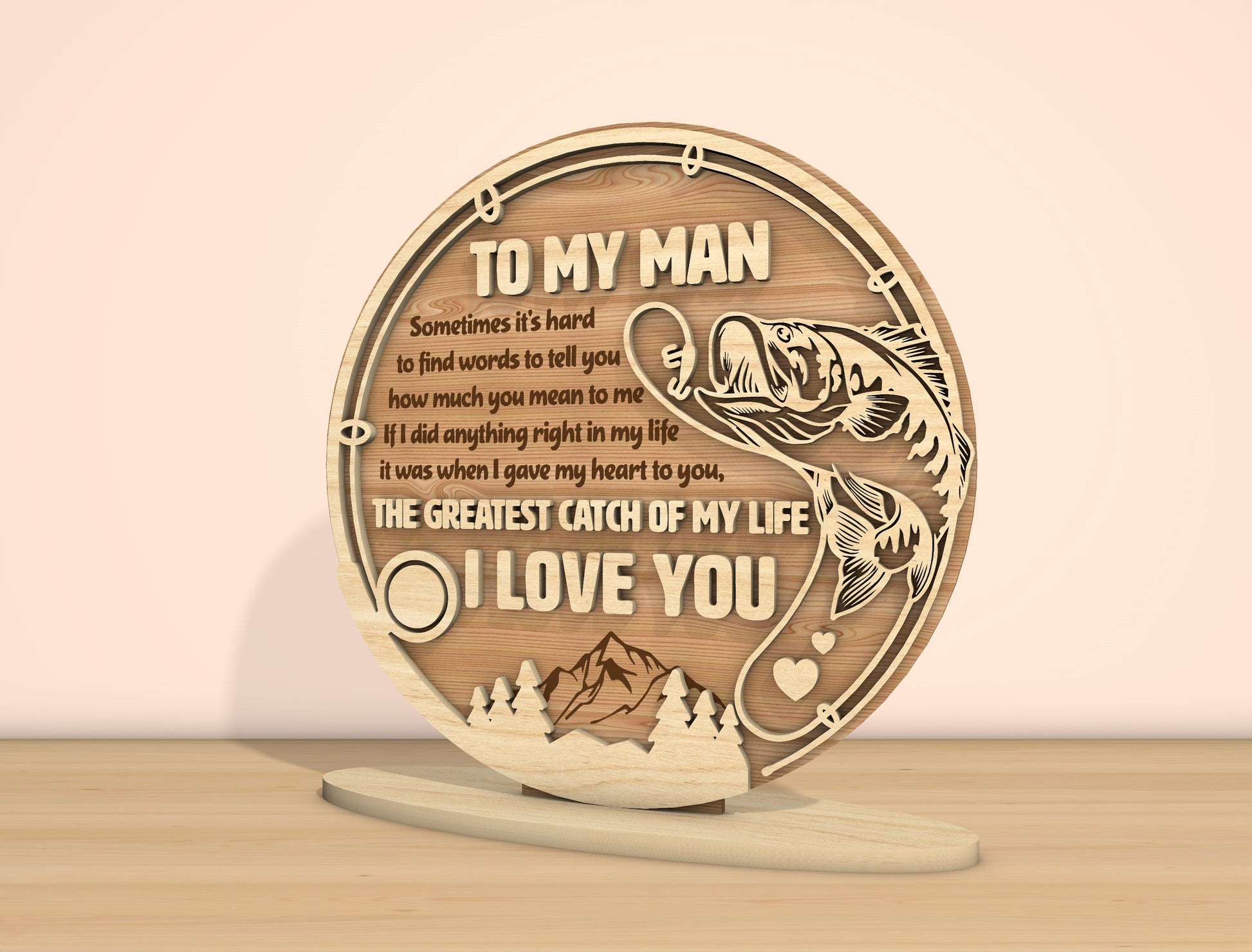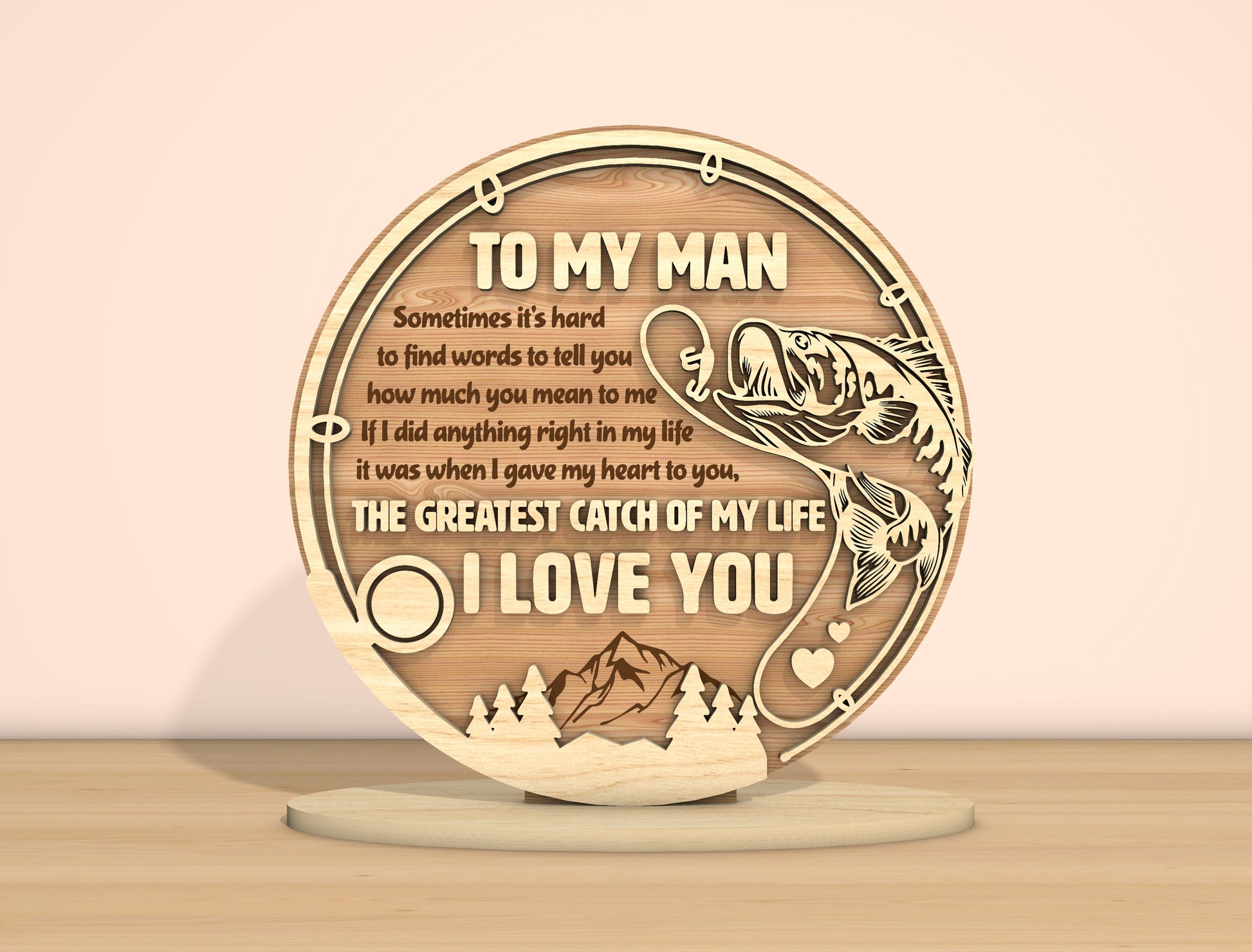 To My Man Fishing Laser Cut File Set | Romantic Fishing Quote Decor | Rustic Wooden Gift | Glowforge, xTool, LightBurn, etc.