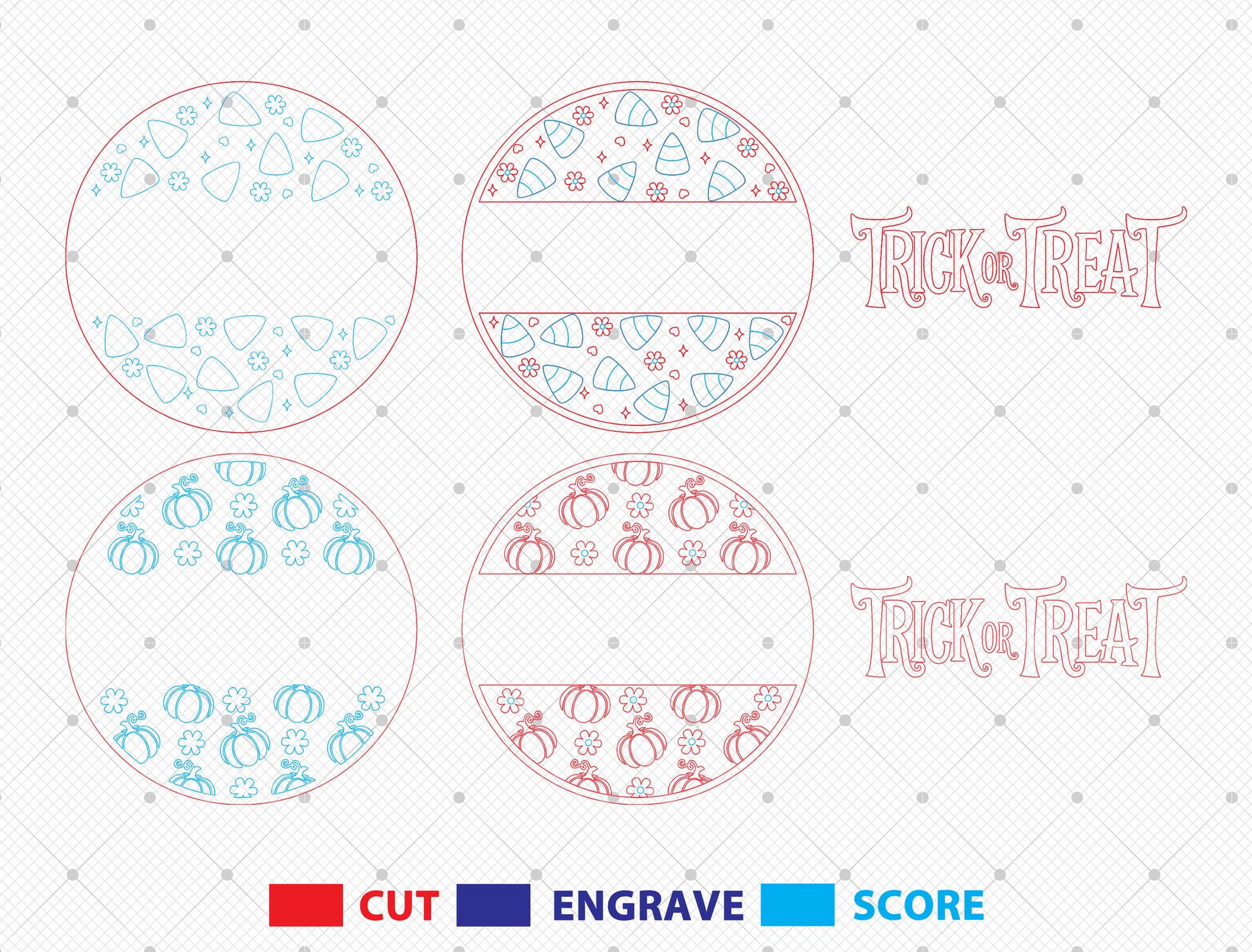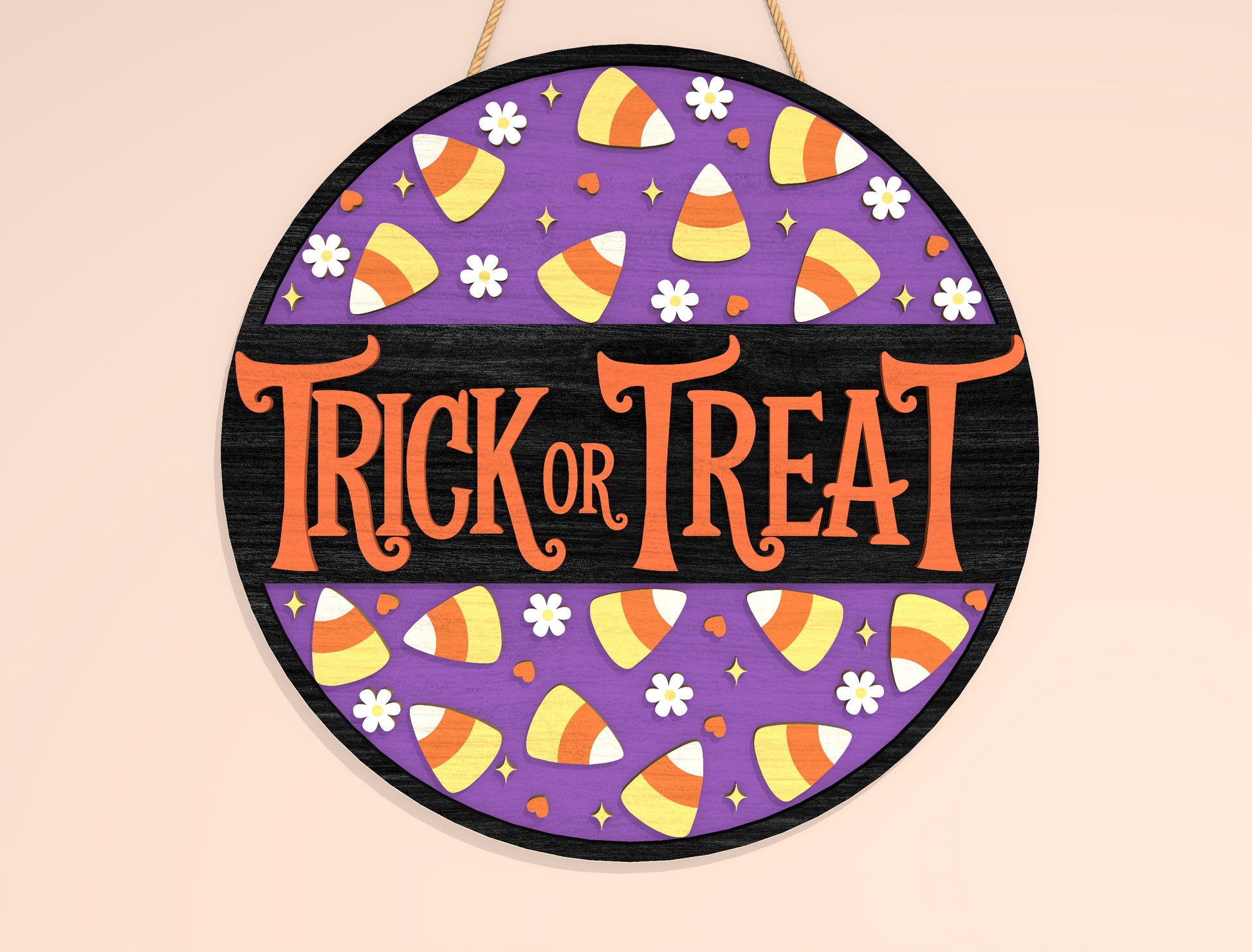 Trick or Treat Round Sign SVG Laser Cut File | 2 Halloween Door Designs | Cute Spooky Decor | Glowforge, xTool, LightBurn, etc.
