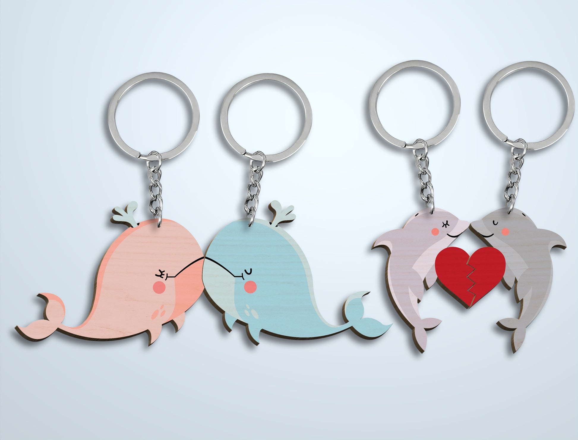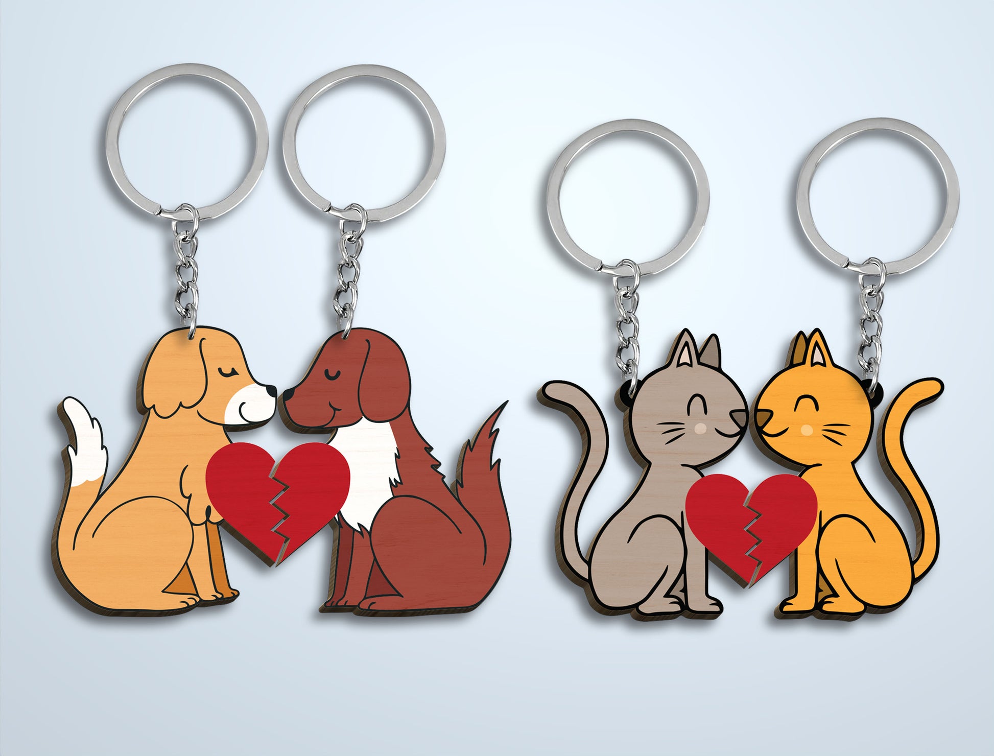 Animal Couple Keychain Laser Cut File Bundle | Cute Love Animals SVG Set | Valentine Wooden Keychain Design | Glowforge, xTool, LightBurn, etc.