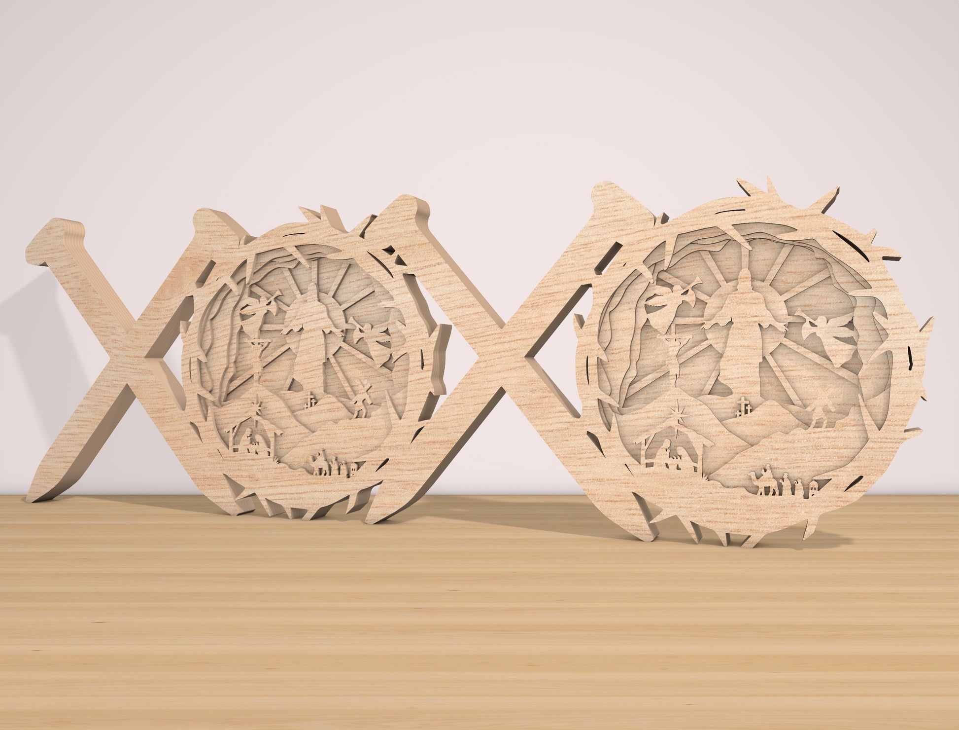 XOXO Nativity Scene Laser Cut File | Christmas Faith Decor | Layered Wooden Art | Glowforge, xTool, LightBurn, etc.